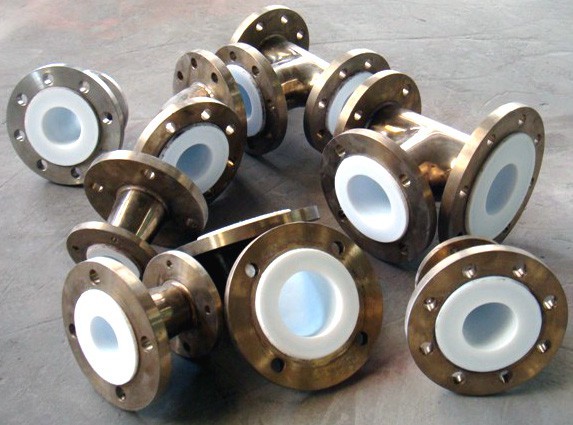 襯四氟管道經過多年來的實際使用,直接影響其使用壽命和性能穩定的因素是溫度,壓力,介質等,優質的材料和先進的制造工藝方法是聚四氟乙烯襯里產品的質量保證.鋼襯四氟直管俗稱松襯管。